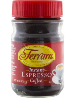 INSTANT ESPRESSO COFFEEBrand: FERRARAFerrara Instant Espresso Coffee is made from Robusto and Arabica coffee beans. Enjoy by adding 1 teaspoon to 1 cup of boiling water for a delicious drink, in your traditional coffee for a bold, more concentrated coffee flavor, or in baking to enhance the richness of chocolate. |