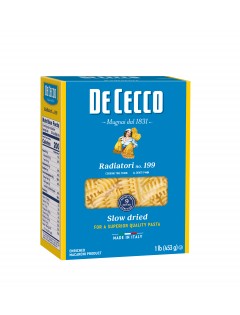 MAFALDE CORTE #32Brand: DE CECCOFrom the beginning of the twentieth century, many forms of pasta have been inspired by mechanics and the automotive industry, such as Rotelle (cogs) or Lancette (clock hands). Radiatori (radiators) are also part of this tradition and are cylinder-shaped with wavy fins across them which are really good for capturing sauces. They are particularly suited for preparing plates of pasta served with dense, colorful sauces of meat of fish, with green vegetables or vegetables, or strong cheeses. Try them when preparing delicious, colorful pasta salads. |