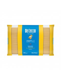 WHOLE WHEAT LINGUINE #7Brand: DE CECCOLinguine are the most well-known type of long pasta from Liguria: they resemble a small, flat, narrow tagliatella-type pasta and were created to be eaten with traditional pesto. It is precisely the flattened section and slightly convex shape of this pasta that make it perfect for trapping the sauce and bringing out all the different flavours. It is excellent just with butter and sage, or combined with fresh tomato-based sauces, with vegetables and aromatic herbs, or quick, spicy sauces prepared with extra virgin olive oil, garlic, red pepper, anchovies, and capers. It is also ideal with sauces made with shellfish and seafood, and with "white" sauces prepared with cream, mascarpone, soft or melting cheeses, with the addition of spices such as saffron, horseradish, curry, and ginger. De Cecco Whole Wheat Pasta is a nutritious option made from 100% whole durum wheat semolina, offering high fiber content and essential nutrients. |