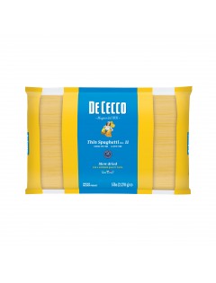 THIN SPAGHETTI #11Brand: DE CECCOThin Spaghetti is a smaller, delicious variation of the classic Spaghetti, and this type of pasta comes from the south of Italy, from Naples in particular. Hot or cold sauces based on fresh tomatoes, vegetables or aromatic herbs are the best way to enjoy this type of pasta. It is also very good with sauces that are quick to prepare with extra virgin olive oil and a dash of garlic, red pepper, and anchovies. Thin Spaghetti is also excellent served with shellfish and seafood sauces. |
