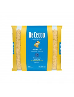 FARFALLE #93Brand: DE CECCOFarfalle, originally from Lombardy and Emilia Romagna, take their name from their distinctive bow tie shape with a tight frill in the centre. The condiments recommended for Farfalle are light sauces: sauces made from butter with peas and ham; white sauces with delicate flavours made from salmon and cream; and sauces made from mild, soft cheeses with a dash of saffron or curry. This pasta is also great for preparing delicious, colourful, imaginative pasta salads. |