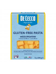 GLUTEN-FREE MEZZI RIGATONI #26Brand: DE CECCOA strong partnership with Gluten-Free specialists, aligned with De Cecco’s philosophy of uncompromised quality, has led to a perfectly balanced recipe of naturally gluten-free cereals. Made with a blend of naturally gluten-free cereals—yellow corn, white rice, white corn, and whole grain rice—this pasta delivers outstanding flavor, excellent sauce-holding ability, and that perfect al dente bite every time. Produced in a dedicated facility, their Gluten-Free pasta guarantees absolute gluten safety. |