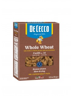 WHOLE WHEAT FUSILLI #34Brand: DE CECCOFusilli come from Campania and belong to the short, straight cut family of pasta. In the past, Fusilli were made by hand according to a method that was passed down from one generation to the next. You had to rapidly twist a strand of spaghetti around a knitting needle with a skilled hand. The ability required to perform this procedure is reminiscent of that of spinners, and as a matter of fact, the term "fusillo" comes from "fuso" (spindle), which was the tool used by spinners. This pasta is particularly good with meat and fish-based sauces or with condiments made with ricotta. It is also perfect with vegetable sauces too that are prepared with a tomato sauce with peppers, aubergines, olives, and capers. De Cecco Whole Wheat Pasta is a nutritious option made from 100% whole durum wheat semolina, offering high fiber content and essential nutrients. |