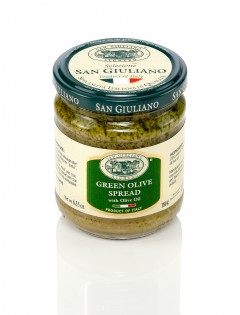 GREEN OLIVE SPREAD W/ EVOOBrand: SAN GIULIANOSuggestions for use: Dilute spread with San Giuliano extra virgin olive oil to get a typical seasoning for pasta, sandwiches, pizza and savory dishes. It makes an excellent flavoring for meats and fish. Ingredients: green olives 87%, extra virgin olive oil, salt. No added preservatives. |