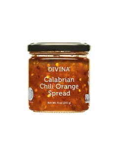 CALABRIAN CHILI ORANGE SPREADBrand: DIVINACrafted with tangy oranges and Southern Italy's hot and smoky Calabrian chili peppers. A sweet, tangy and spicy spread made with the highest-quaility ingredients. Its artisan trinity of flavor profiles makes it a versatile topping for sandwiches and crackers, an addition to a cheese board and a premium glaze for meats, veggies and seafood. |