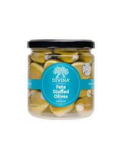 FETA CHEESE STUFFED GREEN OLIVESBrand: DIVINADIVINA - MT. ATHOS GREEN OLIVES STUFFED W/ FETA CHEESE Meaty, buttery green olives filled with a classic creamy feta cheese. The Olive: Large Halkidiki olive with a distinctive point. Pitted. Region: Mt. Athos, on the Halkidiki Peninsula |