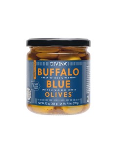 BUFFALO BLUE STUFFED OLIVESBrand: DIVINAGreek olives stuffed with spicy buffalo blue cheese. A rich and creamy treat that is as classic as it is craveable. Try these hand-stuffed Greek olives tossed with greens, dried cranberries and balsamic or panko-fry them and pop away. |