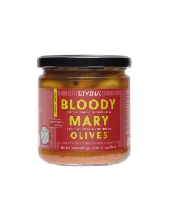 BLOODY MARY OLIVESBrand: DIVINAPitted Greek olives in a spicy Bloody Mary brine. The classic brunch cocktail just got turned on its head with the creation of a savory, robust and fiery Bloody Mary brine that’s matched up with our classic pitted Mt. Athos green olives. And yes, once you've enjoyed the olives, the brine can go straight into your cocktail. |
