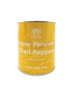 YELLOW PERUVIAN PEARL PEPPERS (TIN)Brand: DIVINAThese lively and bright tear drop shaped peppers are as delicious as they are unique. Providing a beautiful visual and excellent plate coverage for pizza, pasta greens and grains. You'll be delighted by the firm texture and sweet juicy flavor |
