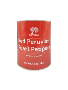 RED PERUVIAN PEARL PEPPERS (TIN)Brand: DIVINA6312300529 vividly red and tear drop shaped, sweety drops are bursting with sweet and sour flavor, a surefire way to liven up salads, flatbreads and pasta dishes |