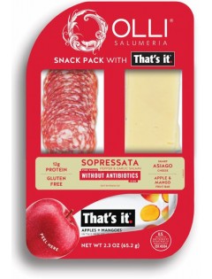 | 202165 | S/O SOPRESSATA, ASIAGO & MANGO FRUIT BAR "THAT'S IT" SNACK PACK | OLLI | 813039024790 | 10/2.3 OZ | More Info