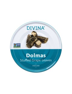 DOLMAS STUFFED GRAPE LEAVES (TIN)Brand: DIVINATender early harvest Sultana grape leaves filled with creamy textured rice, onions, dill and mint with a burst of lemon. |